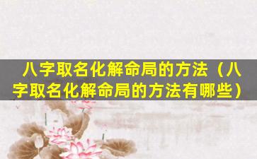 八字 🐠 取名化解命局 🌺 的方 🌺 法