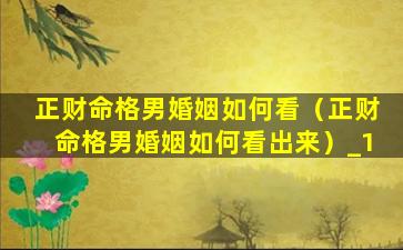 正财男命在婚姻中的财运,需从命格八字中勘察: