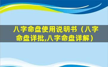 八字命盘详批,是一种古老而神秘的命理学,它可以帮助我们了解自身的命运趋势,从而趋吉避凶,把握人生机遇。