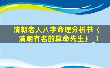 在清朝时期,八字命理学盛行。当时有一本著名的著作《清朝老人八字命理分析书》,作者佚名。此书以详细的八字判例为基础,了清代十二生肖人的性格、运势和吉凶祸福。