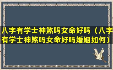 总体来说,八字中有学士神煞的女命大多聪明好学,才华出众,事业顺利,婚姻也较好。但具体吉凶还是要结合整个八字格局来判断。