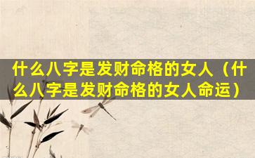 具体八字命格需要结合八字的整体格局、用神喜忌等因素综合判断。满足以上多个特征的女性,往往具有较好的发财命格。