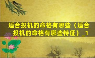在命理学中,某些命格的人天生具有较强的投机运势。以下几种命格类型适合投机: