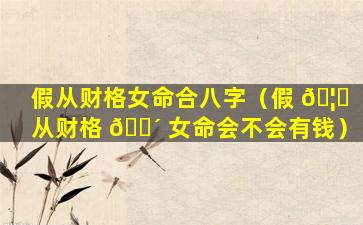 1、假从财格女命合八字 假从财格女命与八字 假从财格为财旺身弱的八字格局,女性若得此格局,则为人精明干练......