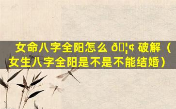 1、女命八字全阳怎么破解 八字全阳的女性,往往性格刚强,独立自主,但情感之路坎坷,容易出现婚姻不顺的情......