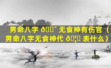 1、男命八字无食神有伤官 男命八字无食神有伤官者,性格耿直,思维敏捷,口才出色,善于表达自己的想法。 由......