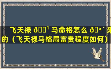 1、飞天禄马命格怎么来的 传说,飞天禄马命格是由一位名叫禄马星君的神仙赐予的。相传,禄马星君是天庭掌管......