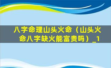 山头火命五行属阳火,其特点是热情似火,积极向上。若八字缺火,则会影响命主的性格和运势。