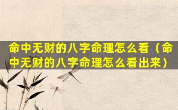 命中无财的八字命理特点: