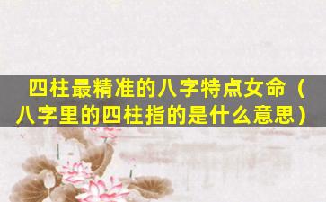 四柱八字作为一门古老的命理学,对于预知女性的人生运势有着一定的参考 🦆 价值。其,中女命四柱最精准的八字特点如下:
