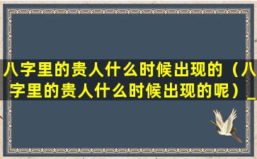 八字中的贵人,指能扶助命主、化解灾厄的吉 🌵 神贵人。出,现的、时。机与 💮 命主的四柱大运以及流年息息相关