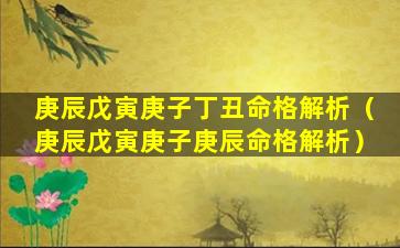 庚辰戊 🦈 寅庚子丁丑命格 🐞 解析 🌳