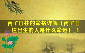 丙子日柱命 🐼 格详解图