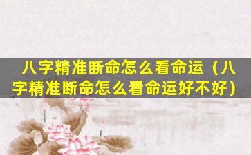 八字 🦍 精准断命看命运好坏,主要从以下几个方面 🐼 来分析: