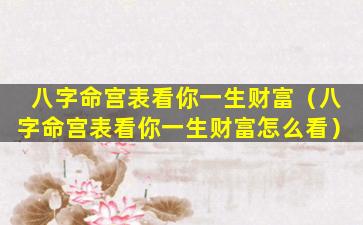 八字 🌹 命宫表看你一生 🐶 财 🦍 富