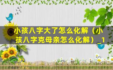 小孩八字大了,意,为生辰八字与父母不相合民间认为会导致家庭不和 🌵 睦 🐠 小孩、运势不顺。化解方法如下: