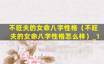 不旺夫的女命 🦢 八字性 🐴 格特点