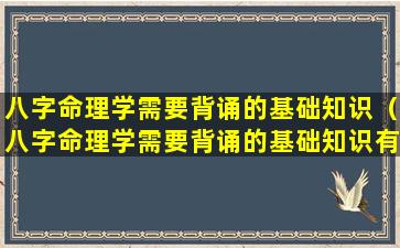 生辰八字命理学是一门博大精深的学术,在学习过程中需要背诵大量基础知识,这些基础知识主要包含以下几个方面:
