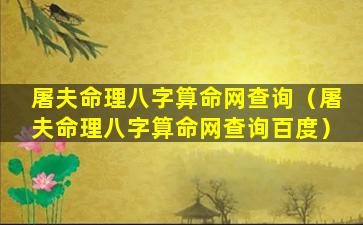 屠夫命理八字算命网查询百度