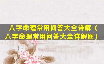 八字命理常用问答大全详解图